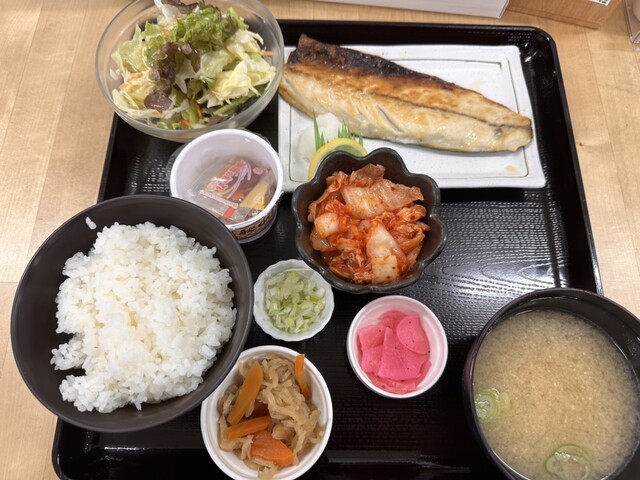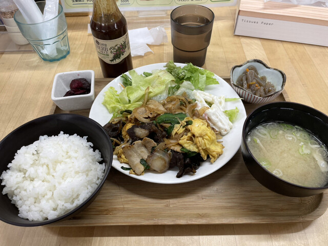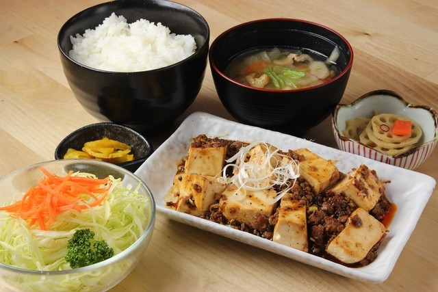 定食の内容は、主菜、サラダ、小鉢(冷奴)に、ごはんと味噌汁が1杯お...