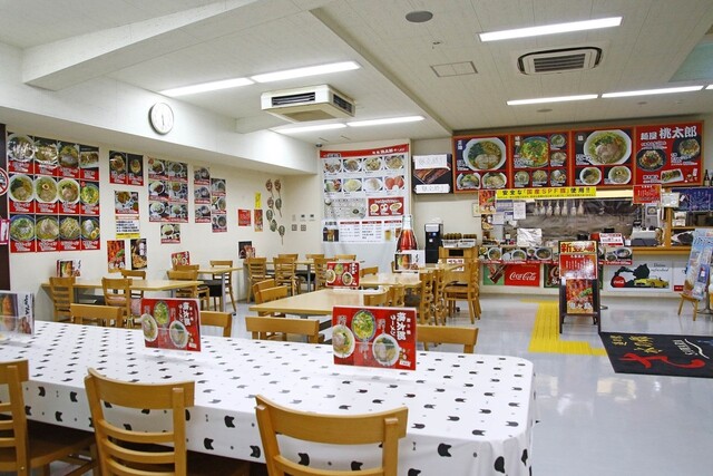 地産地消にこだわった、ラーメンなどのお料理をご提供する【麺屋桃太郎】。食材は、香取市産の野菜や、近郊から仕入れたお肉や卵など地元のものにこだわっております◎人気の「野菜たっぷりピリ辛みそラーメン」や「唐揚げ定食」、オススメの「石焼麻婆定食」など豊富なメニューからお選びください。広々としたフードコートは、パーテーションを設置しております!お買い物の後やご家族連れで、どうぞお気軽にお立ち寄りください。