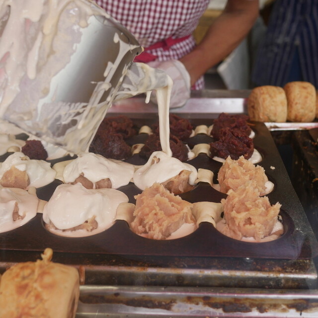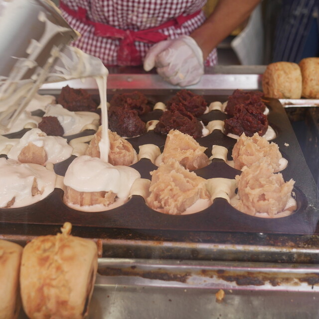 今川焼の黒あんと白あんを2個ずつ頼み、あんこだけをさらに追加注文。