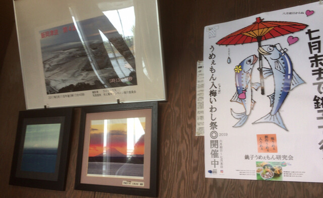 写り悪いですが、左は3.11の時の写真と入梅いわし祭りのポスター。