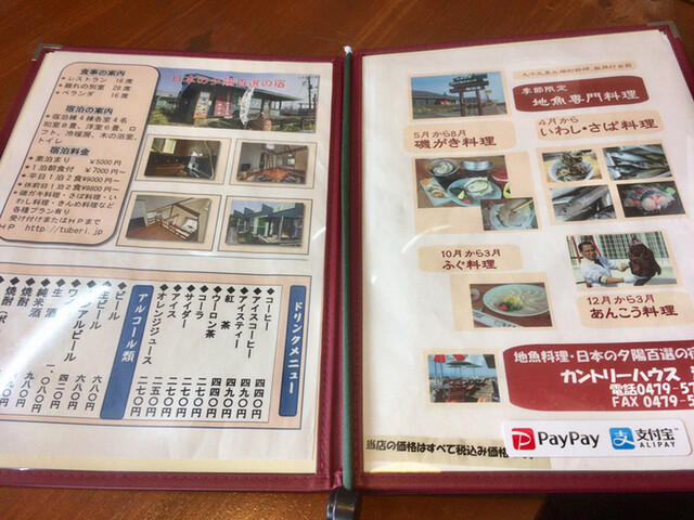 メニュー。宿泊もできるみたいですが、よくわからなくて、宿泊された方のレポ読んでみたい。