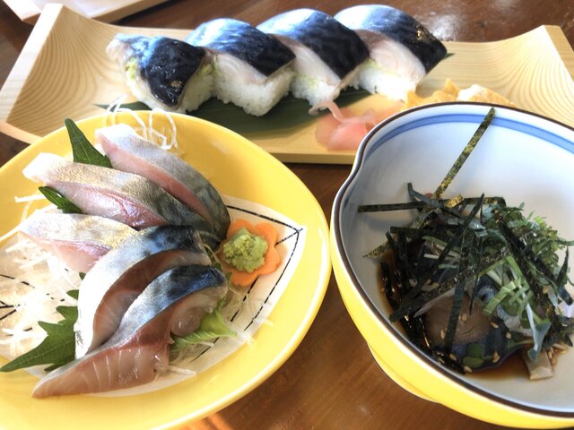 サバ寿司は定食もあるみたいですが、私がいただいたのの倍はあり凄い量でした(^◇^;)サバ寿司をシェアして、他のお刺身(この日はマイワシ、ふぐあり)いただいても良いかもしれないなあー。