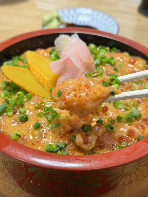 平日の昼間ランチで訪問。ネット上ではなかなか見つけられない良いお店だと聞きお伺いしました。 カウンターと座敷のテーブルのあるお店です。 爆弾丼はペースト状になった雲丹、いく... 詳細を見る