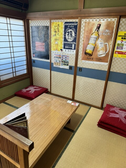 カウンターと座敷のテーブルのあるお店です。