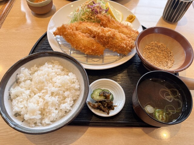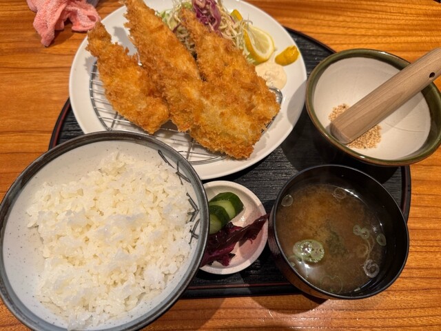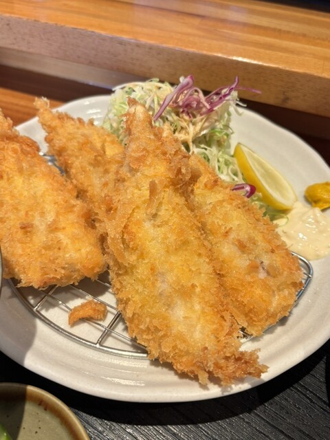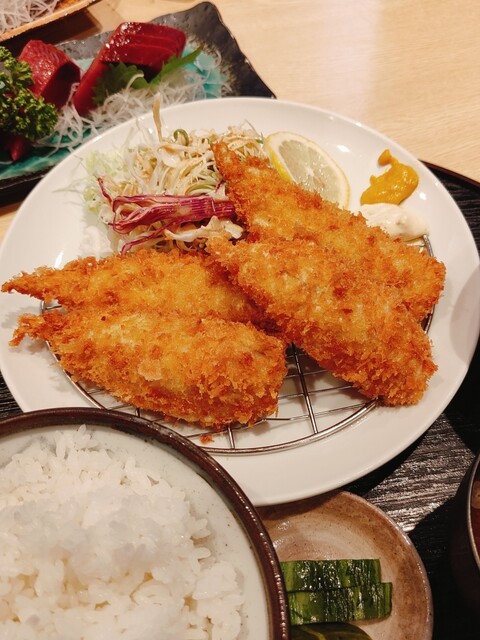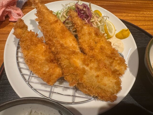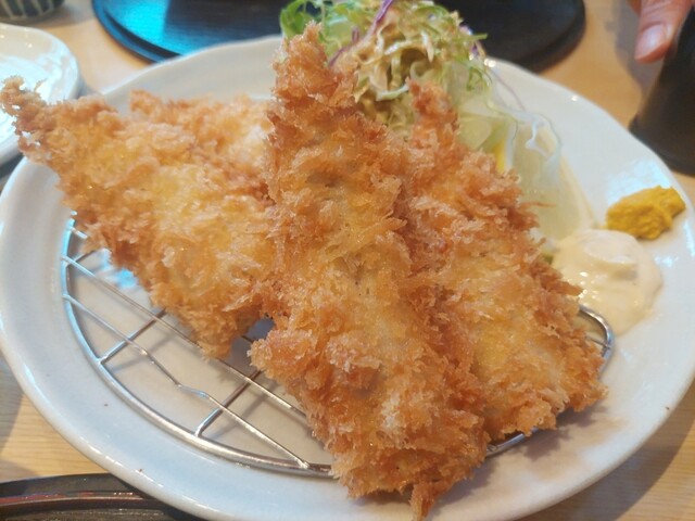 揚げたてのふんわりしたアジフライの食感が最高です。値段も昨今の物価高と比較して割安です。東京から遠出する価...