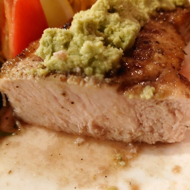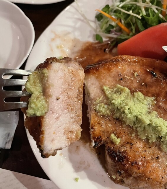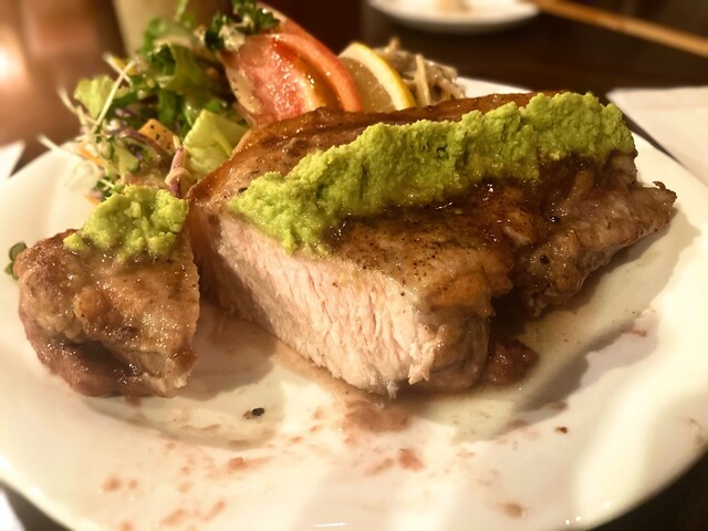 見た目のビジュどおりに味も破壊力あり。唯一無二の塩わさび豚ロースソテー