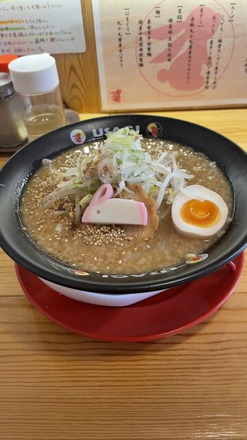 東金街道沿い、お店の前の駐車場に車を停め入っていくとほぼ同時入店の先客2名。右手にある券売機で食券購入。醤油、焼味噌、辛味噌などがあります。他にははまぐりと限定の濃厚魚介がありました。悩みましたが、限定‼︎濃厚魚介らーめん(900円)にしました。