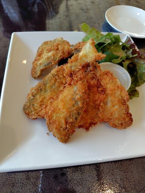 3月日曜午後、九十九里方面へドライブ行った途中でお昼を食べようとコチラDining咲さんを突撃。店内潜入すると13時を過ぎておりましたがほぼ満席の混み様でした。2人掛けテーブル席に案内され、家内は山武トマトのマルゲリータ1,200円、おじさんは九十九里アジフライ1,000円をライス、スープ付きにてオーダー。ここまですんなりオーダーしたかの様ですがレギュラーメニューの穴子天麩羅定食を初めにたのんだら...