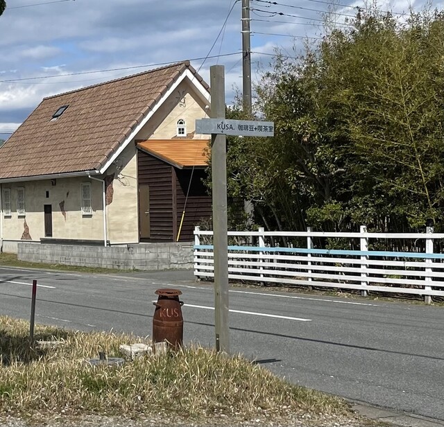 突き当たりの信号を右折。程なく左手にKUSA.喫茶。