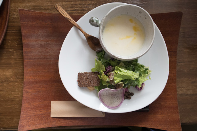 茂原市で生まれ育ったオーナー夫婦が、みなさまの協力を 得ながら運営し、13年目を迎えた小さなカフェです。 実り豊かな房総半島で採れるおやさいを主役にした、 食事とスイーツをご提供しており、 カラダにやさしい料理方法が特徴です。