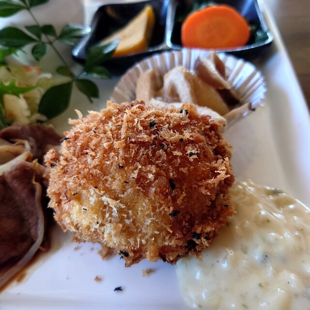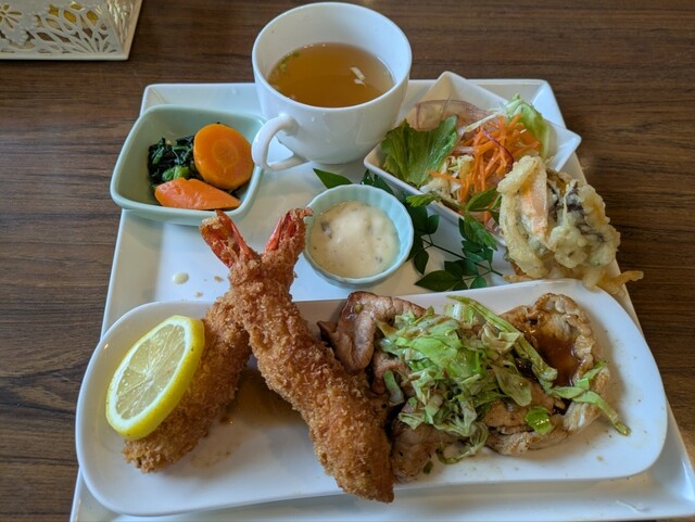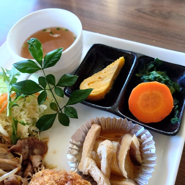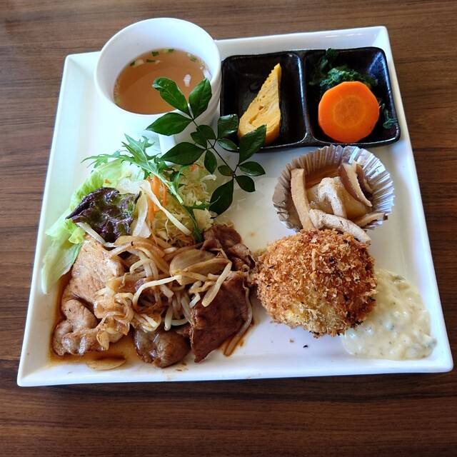 本日のランチの盛合せ、ポーク生姜焼きとカニクリームコロッケ、スープ、サラダ、ライス、ドリンクが付いたお得なセットを頂きました。それと、ミニカスタードプリン。 サクサクな衣にぽ... 詳細を見る