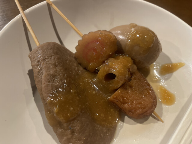 ウインナー串、ジャンク串、黒はんぺん ※3つセットで330円。黒はんぺんがあると-30円 たまご、牛すじ、だいこん ※ 3つセットで330円。牛すじがあると+30円 塩... 詳細を見る