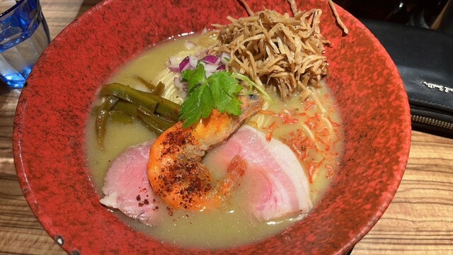 以前から行列が出来ているのを見かけていたので気になっていた鷸さんにようやく訪問しました。 近隣のコインパーキングに停め、訪問しました(駐車券を見せると割引されるようです。) 店内は満員で15〜20分程待ちました。先に食券を購入し、店外で並ぶスタイルです。 並んでいるメニューを見ると創作系が... 詳細を見る