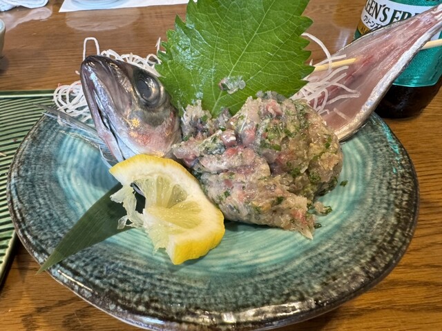 ▼鯵のなめろうはお酢をちょっとつけていただく