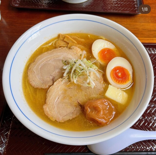 梅塩バターらー麺 バターのコク エビ香る! 県内外の人気店が自慢の味を競う「千葉県ラーメン選手権2013」(市原FM放送主催) 。延べ5万人による投票の結果、地元・市原市光風台の「ダボハウス」がグランプリを獲得! 2011年の市内大会優勝に次ぐ栄冠となった。