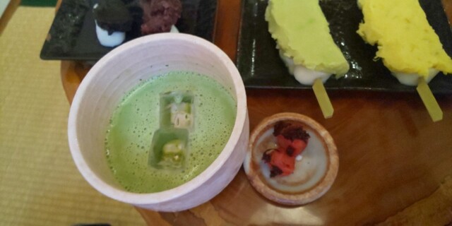 「サルビアコーヒー」「抹茶(冷)」を注文し、席に座ります。