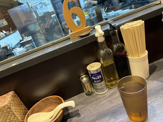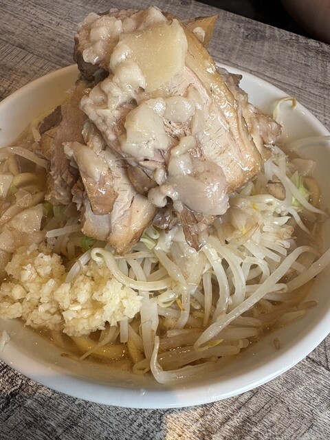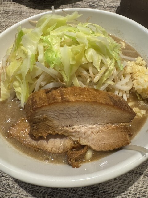 出張の日のランチタイムに伺いました。12時少し前です。お店は賑わっています。券売機で郎ラーメン小920円とトッピングの海苔180円を購入。野菜増しとニンニクも。 カウンターに... 詳細を見る