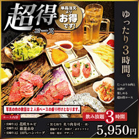 オープン記念コースがグレードアップ!内閣総理大臣賞4年連続受賞の宮崎牛A5等級の各品+満足アラカルト料理+肉寿司+デザート+飲み放題3Hでこの料金でご奉仕いたします。※クーポン限定ですのでご予約の際にはクーポンをお使いください。(特別な条件はございません)