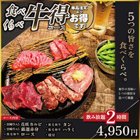 【食べログ限定】食べくらべ牛得コース【飲み放題2時間付き】7品