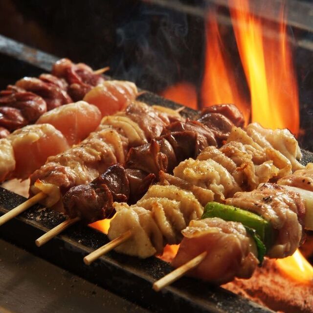 備長炭で焼き上げる比内地鶏串焼と素材にこだわる創作料理 飲み放題付コース 5,000円~◎