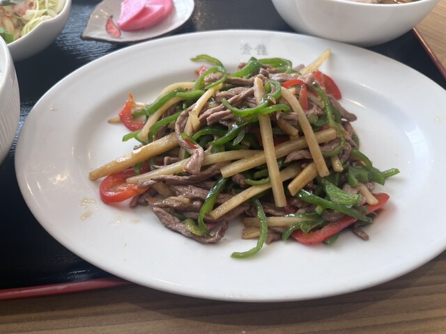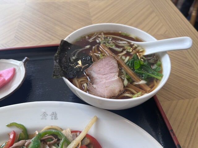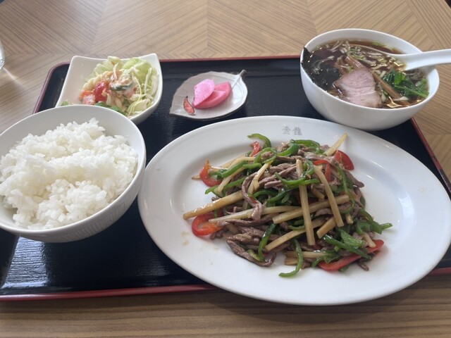 ○青椒肉絲定食ランチ スープをミニラーメン変更