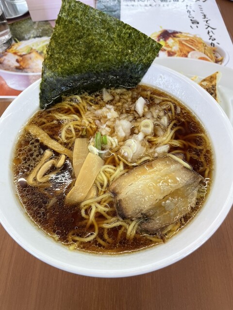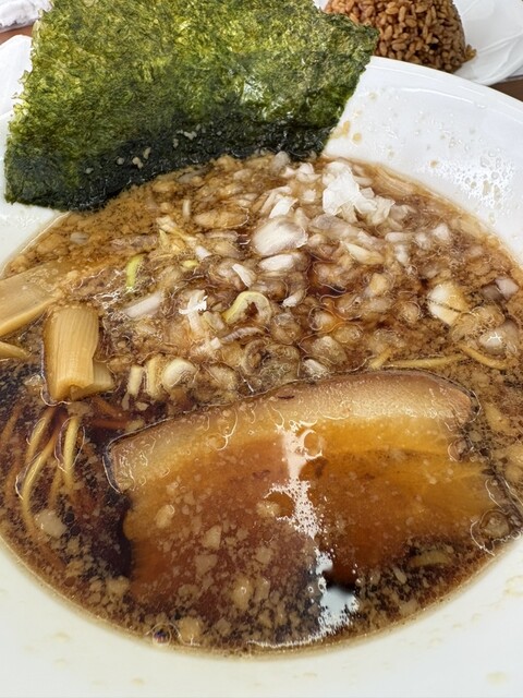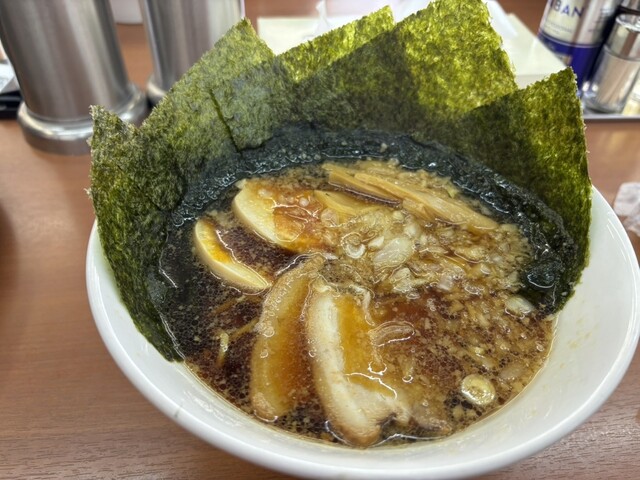 せっかくだから海鮮もいいけど竹岡式ラーメン食べに行こうかとなって梅乃家は通ったけど並んでたし乾麺だったら別にいいやって事でこちらへ。