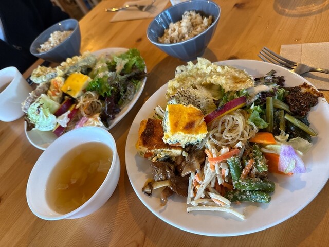 日曜日の12時半頃に2人で訪問。 並びは4組ほど。車の中でも待てるので問題はなかったですが、なかなかの人気店です。 駐車場の数は人気と比べると少し少なめかもしれません。 カフェの隣は広場と公園の遊具のようなものがあり自然を感じられる景色が広がります。カフェ自体もジブリに出てくるような感じで... 詳細を見る