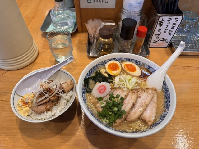 先週書き込み、今回は、札幌風味噌を攻めに。 開店前、約15人。店を出たとき車で待機者数知らず。だが駐車場は満車。 札幌出身の俺は、札幌味噌と言われれば堪能したいだけ。 チャーシュー飯400円と札幌風味噌ラーメン900円を注文。○○風のメニューは、初めての経験。最高のユーモアだ。 今回、券売機... 詳細を見る