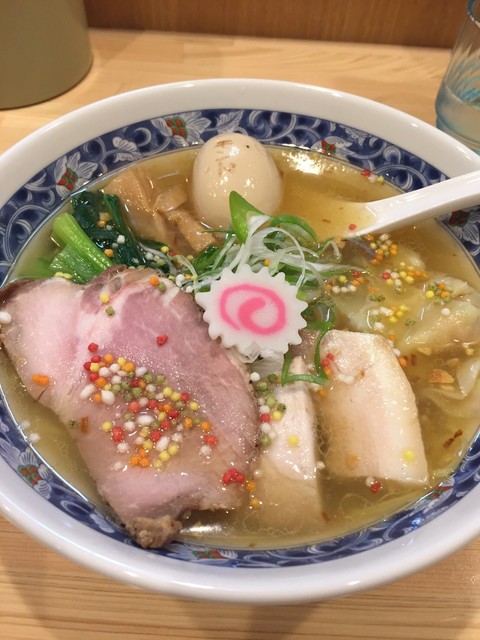 鶏ガラ、モミジ、豚骨に、ニンニク、生姜、セロリ、玉ねぎなどの香味野菜を加えじっくり9時間煮込んだ鶏清湯スープに、アサリ、ホンビノスの貝出汁を、