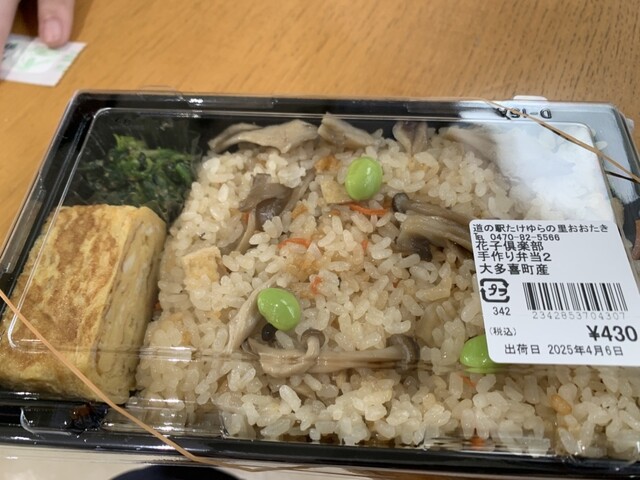 旬の野菜・果物が並ぶ農産物コーナー、地酒やひもの、お菓子などの房総のお土産コーナー、地元の食材が楽しめる「たけゆら食堂」があります。 食堂ではジューシーな猪メンチの載った忠勝カレー、猪肉がドーンと載った猪どんぶり膳、筍メンマたっぷりのラーメンなどが楽しめます。中でも今のオススメは筍てんぷら、猪メンチ、筍コロッケがセットになった「たけゆら定食」880円、たけゆらの里の魅力がつまった一品です。是非お召...し上がりください。 また祭り寿司や天ぷらの入ったちょっと豪華な団体様メニュー(予約のみ)もございます。