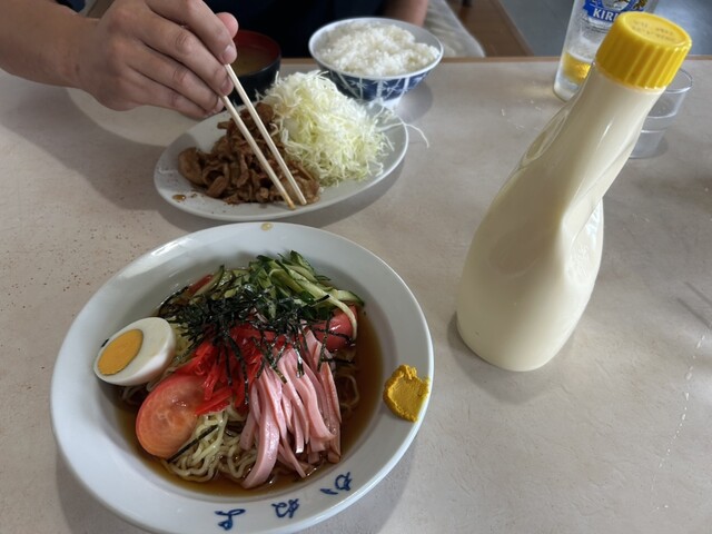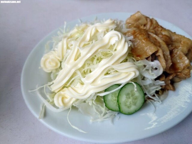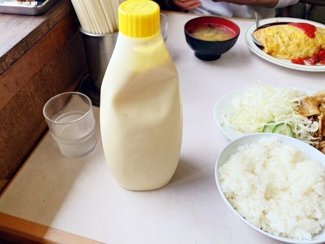 コチラの定食はキャベツの千切りが沢山盛つけているのと、デカイマヨネーズボトルが配膳されます