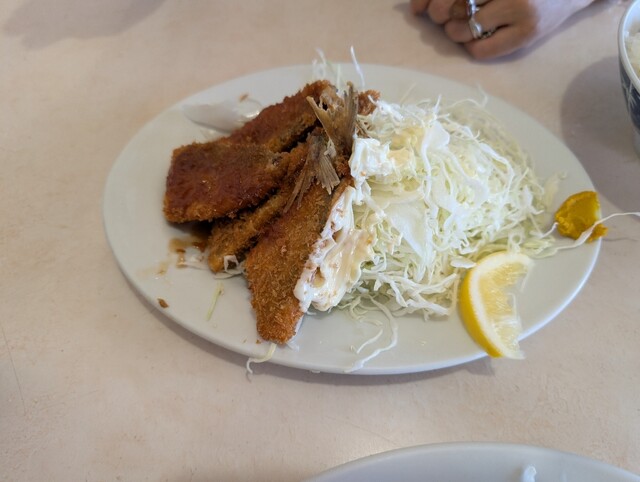 アジフライは小さ目なアジを3枚におろす半身の食べやすいサイズが三尾分6枚でした