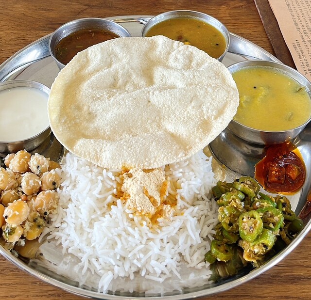 南インドで学ばれた店主さんの作る絶品本格ミールスセットがいただけます。