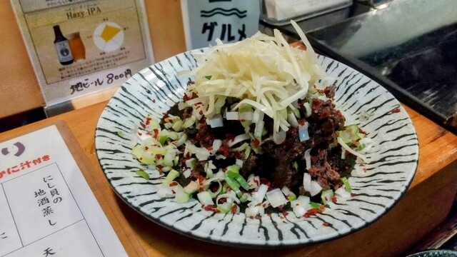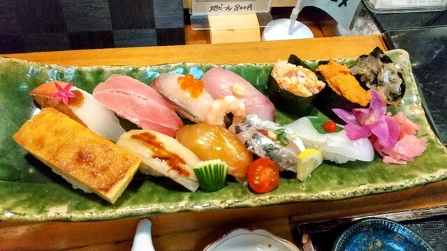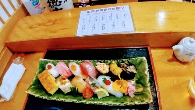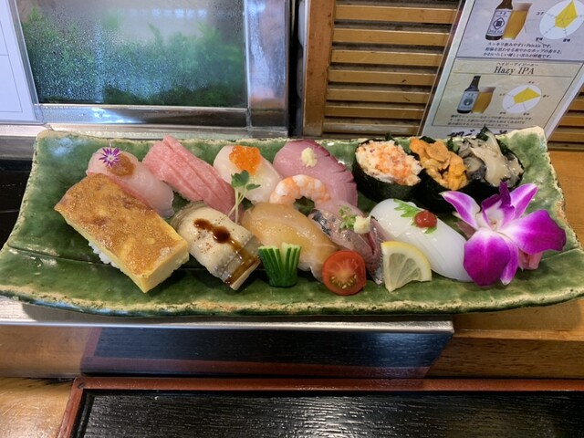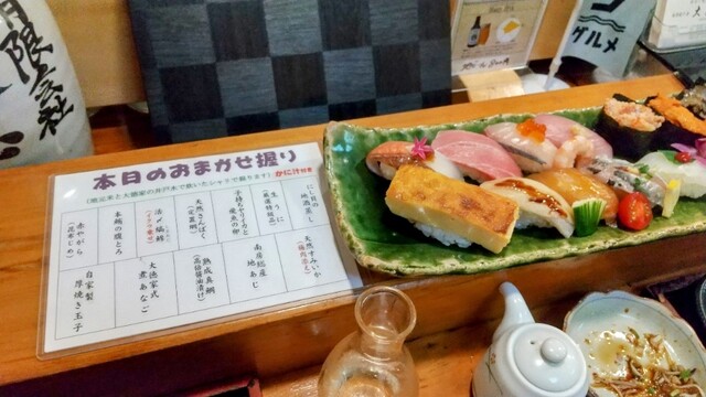 仕事で近くのホテルに泊まった際に事前に予約して2名で訪問。 ◆刺身盛り合わせ1.5人前 ◆なめろう ◆ カジキの生わた塩辛 ◆おまかせ握り鮨 ◆お好み寿司 中トロ、炙りサーモン、スミイカ×2、いくら、菜の花、腹トロ、鯛 ◆生ビール、梅酒ロック、日本酒(岩の井、不動) 刺身は味わ... 詳細を見る
