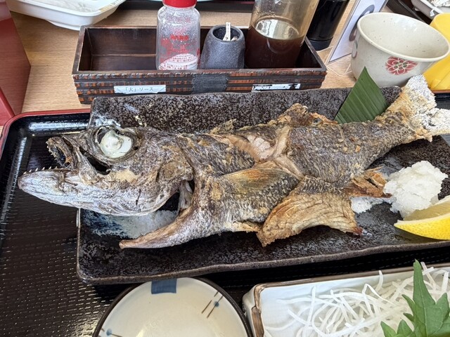 1クール目で25組ほどが入店。残念2クール目からになりました。待つこと60分ほどで案内されました。メニューを散々眺めて決めたのは富浦サバの唐揚げ、お刺身三点盛り定食。1870円税込。お...