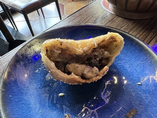 お湯 席に着くと、オリエンタルな雰囲気の金属製のポットに入れられたお湯が運ばれて来たわ! 今日の深圳の最高気温は27度、10時過ぎでも普通に暑いのにお湯だったわ! 中国でお冷は出て来ないって聞いたけど本当だったのね! 新疆过油肉拌面(過油肉ラグマン) 過油肉ラグマンとサムサを注文した... 詳細を見る