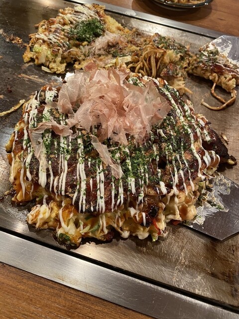在繁忙的晚餐时间之前,快速进店。由于大汗淋漓,我喝了杯生啤酒,然后享用了炒面、猪肉泡菜和大阪烧,肚子饱饱的!每道菜都是在厨房制作后上桌,分量也相当多。 我尝试了一款只有培根、玉米和...查看详情
