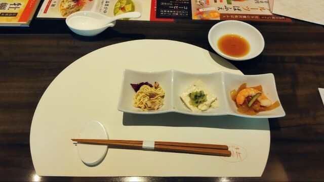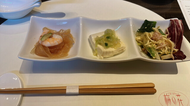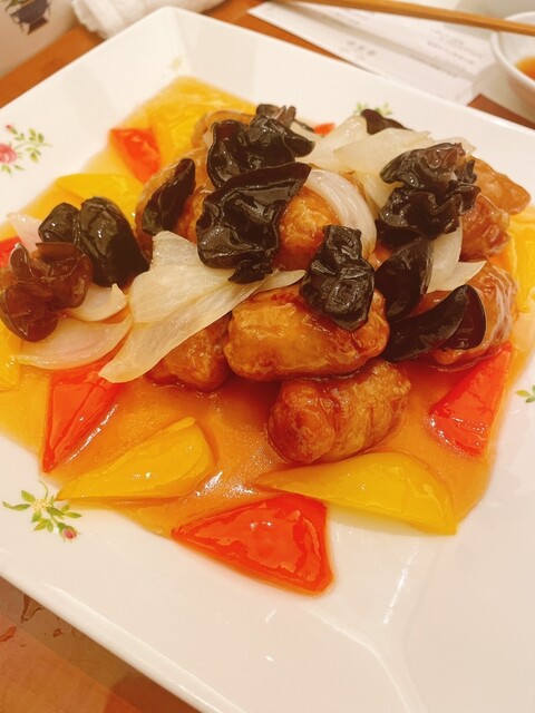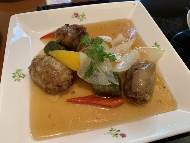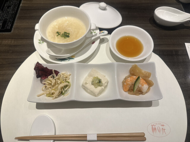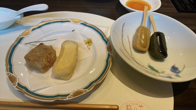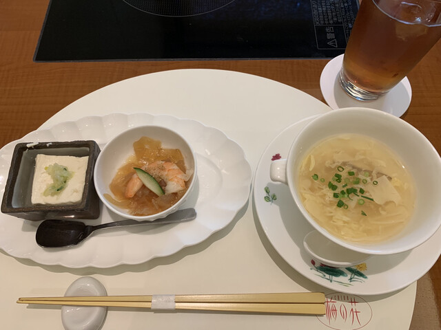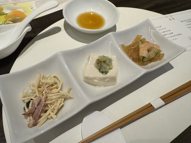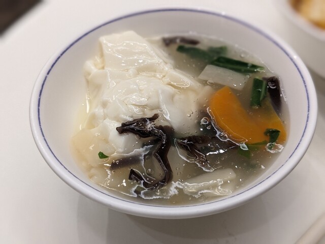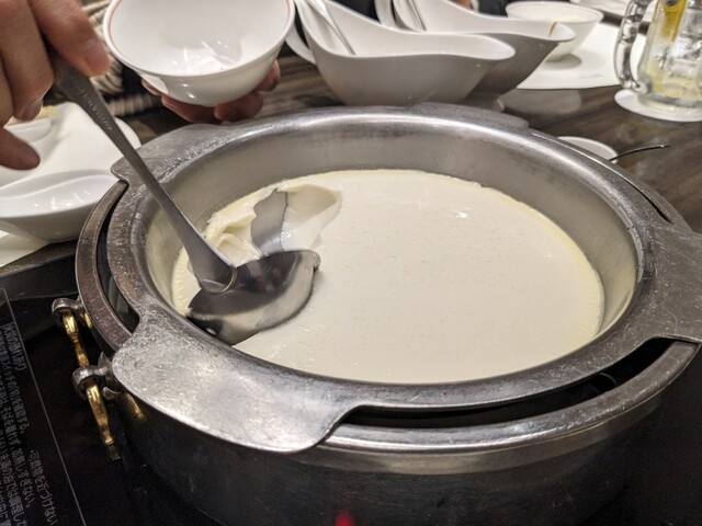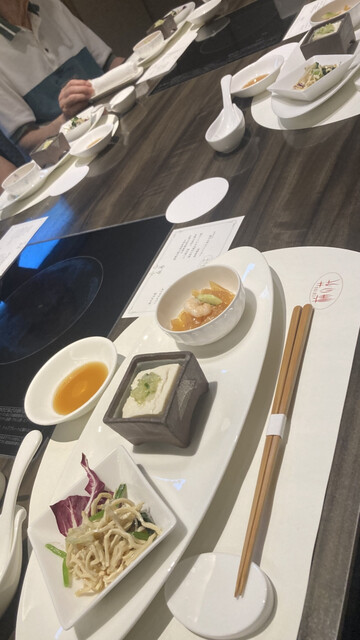 此外,还有豆皮等豆腐相关的中式菜肴,每一道都很温和可口。最后吃的杏仁豆腐浓郁有弹性...