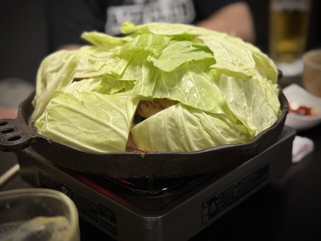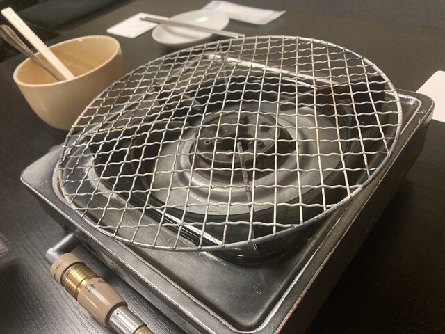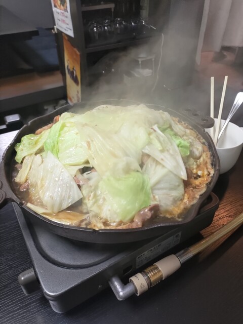 这家店似乎是秋田的烤炒肝,采用的是烤羊肉锅的方式。菜单主要是‘炒肝套餐’和‘牛肉套餐...