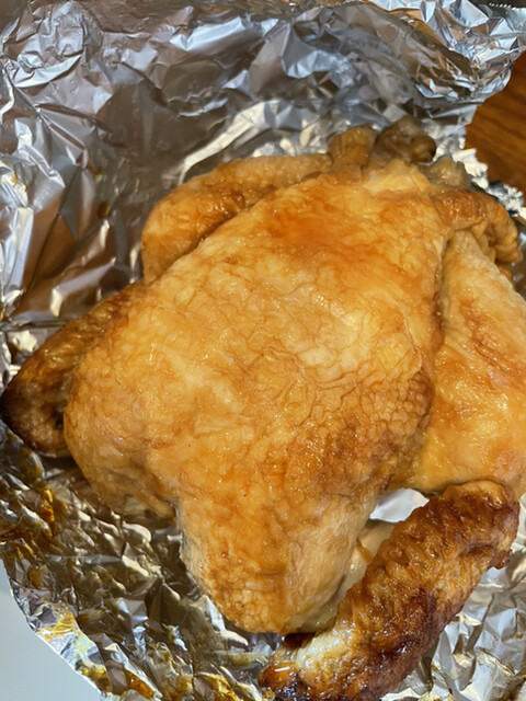 半边都没有吗?烤鸡看起来好像不少,有点犹豫。不过我带回家,分几次顺利吃完了。肉质非常嫩,放进冰箱后依然保持美味,令人满意。