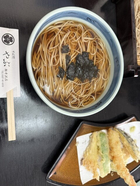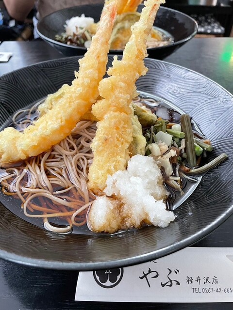 我在轻井泽的“蕎麦处やぶ 轻井泽店”享用了海老天おろし蕎麦。店内氛围宁静,充满和风,让人可以悠闲地享受蕎麦。