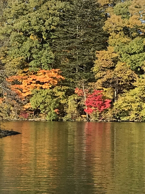 秋叶和湖泊真的很美。