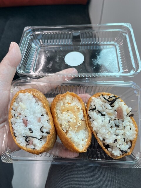 这个独特寿司相当大。里面尽有各种配料,像是腌菜那样的东西增加了脆感,非常美味。油炸豆腐皮也不太甜,与里面的馅料非常搭配。...