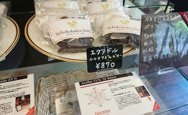 从轻井泽车站步行大约10分钟吧?位于旧轻井泽之前的主要街道旁边,这是家巧克力店,使用的是在日本稍微稀有的瑞士费尔克林公司的巧克力。