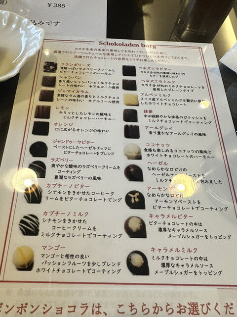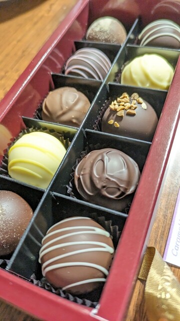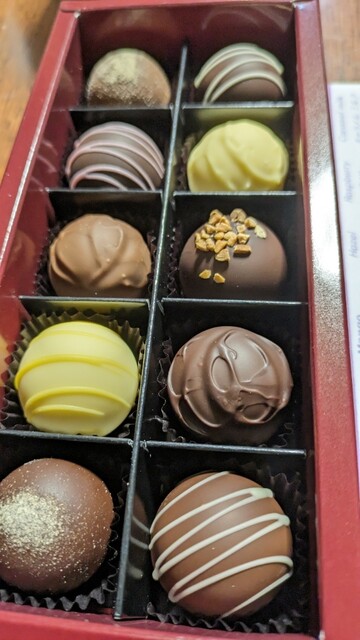 我非常犹豫,最终选择了四款:略微苦涩的巧克力、牛奶巧克力、香槟风味等。