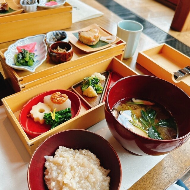 冬季的山间早餐以似乎能唤起冬季雪景的豆浆火锅开始,搭配色彩丰盛的和风菜肴、出汁卷蛋、荞麦茶粥和清爽的味...