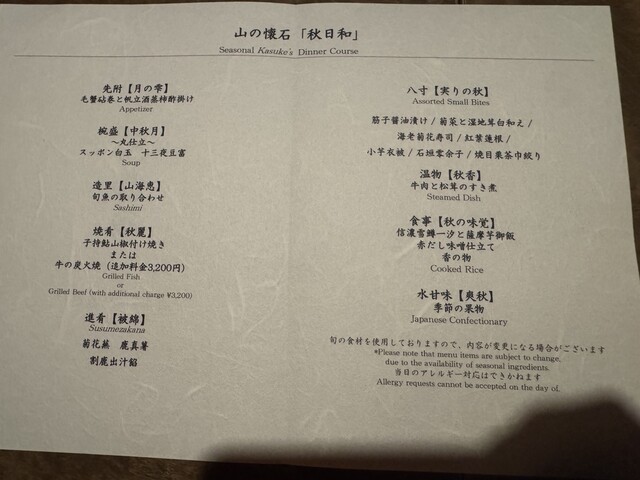 在星野轻井泽享受的山间怀石料理「嘉助」