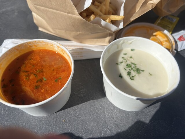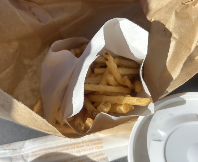 天气冷所以没有点可丽饼,实际上汉堡已经让我很饱。吃完先前的炸肉饼有些后悔,如果只点炸丸子就好了。