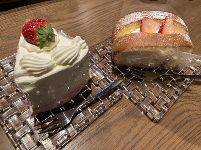軽井沢駅から歩いてすぐ。店内はとても可愛い内装で居心地よさそう。もう少し早めに着いていれば店内でいただきたかったですが、もう遅いのでホテルで晩御飯後にいただきます。バナナと胡桃のケーキと、モンブランを...