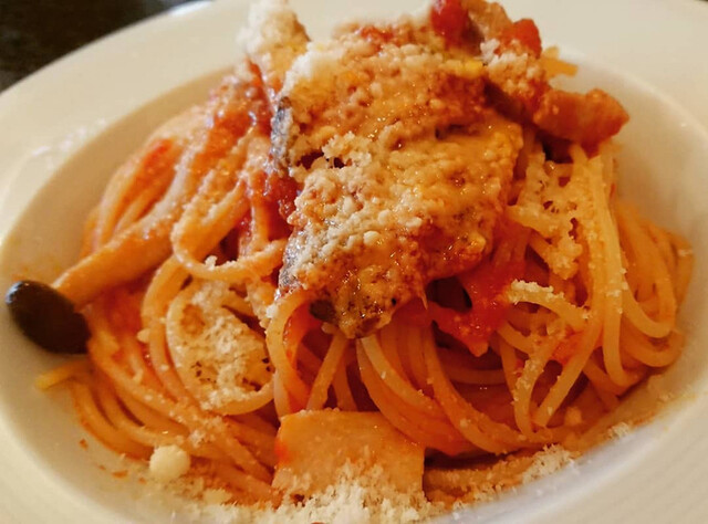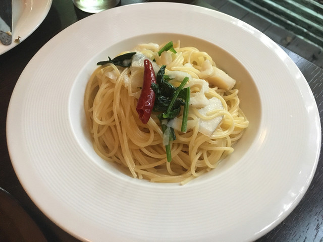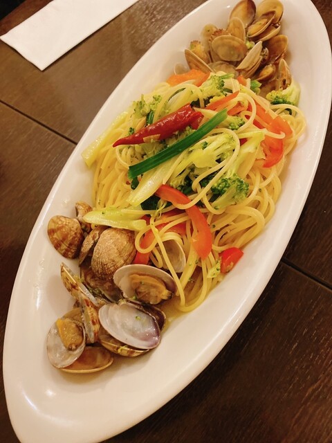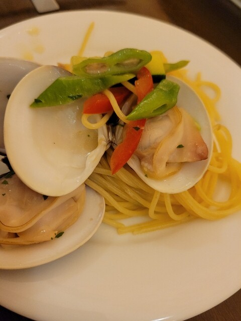 意大利面是配有大型蛤蜊的蒜香意面。虽然没有加入干辣椒的调料,但辛辣感很足,味道层次分明...
